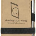 3 1/4″ x 4 3/4″ Light Brown Laserable Leatherette Mini Notepad with Pen